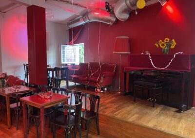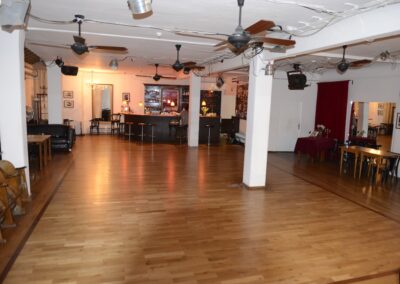 2 Räume à 170 Quadratmeter, jeweils mit eigener Bar, 100 Sitzplätzen und Holzfußboden.